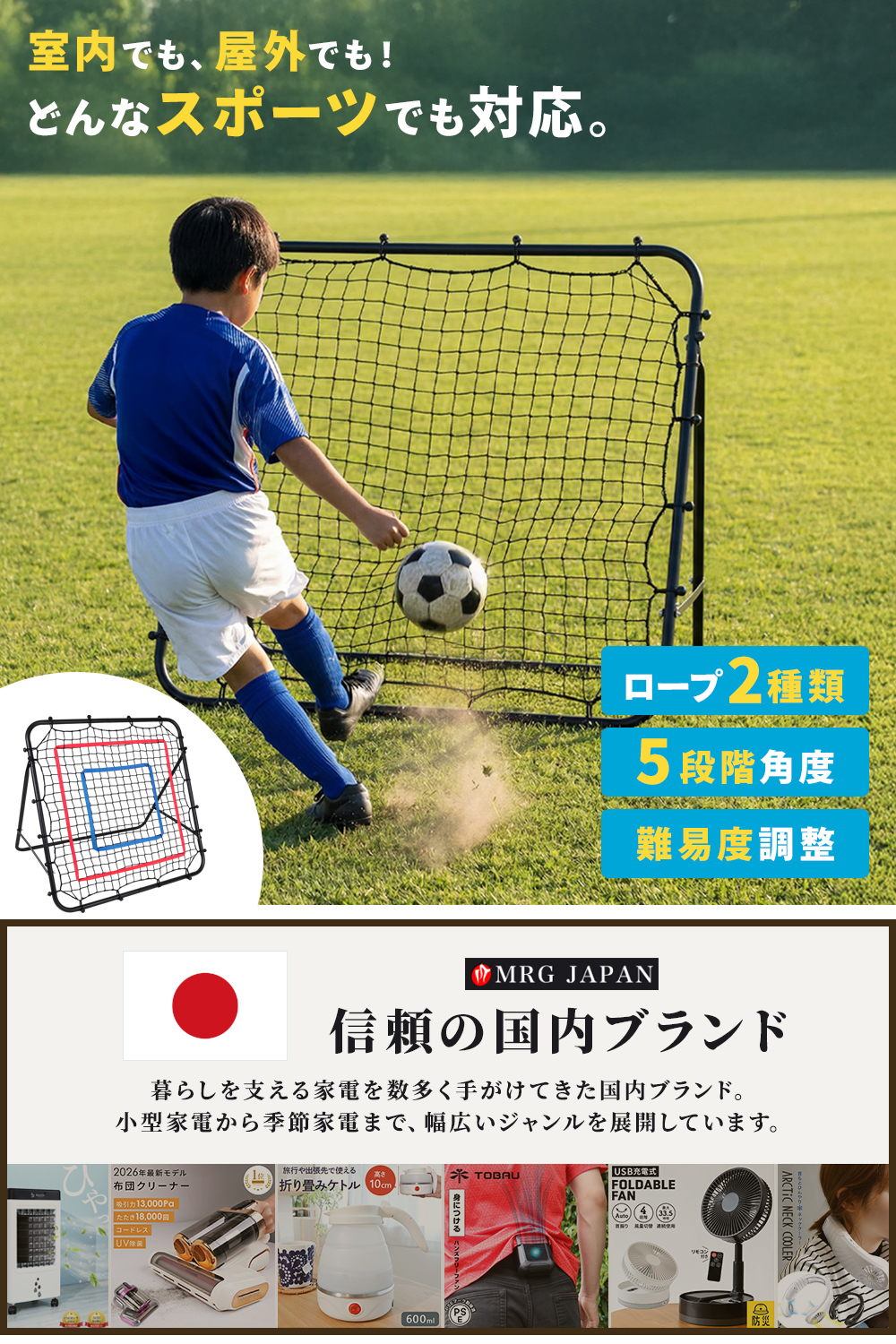 リバウンドネット 野球 サッカー 5段階調整 簡易ターゲット用ロープ オムニトレーニング 室内OK テニス バスケット 自主練 自宅練習 室内練習 子供 親子 軽量