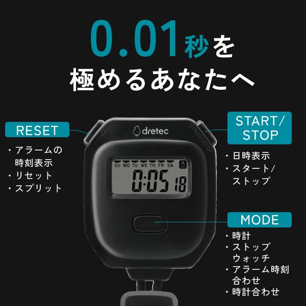 ストップウォッチ タイマー ドリテック 公式 時計 1/100秒 スプリット 勉強 アラーム 計測計