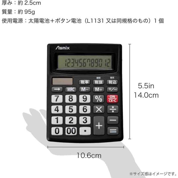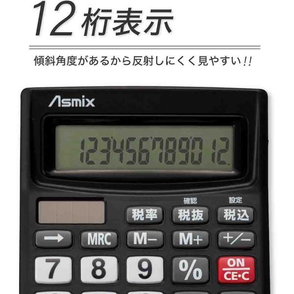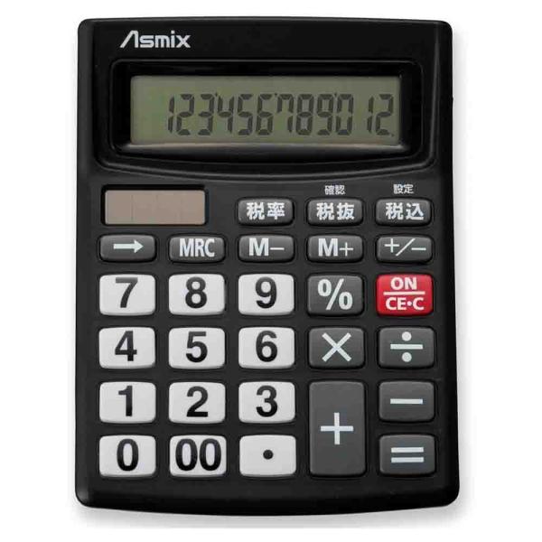 ビジネス電卓 12桁 ブラック アスカ Asmix [新消費税対応 税計算 ビジネス 家計簿 文字が大きい 見やすい 読みやすい 業務実務] C1256BK 送料無料
