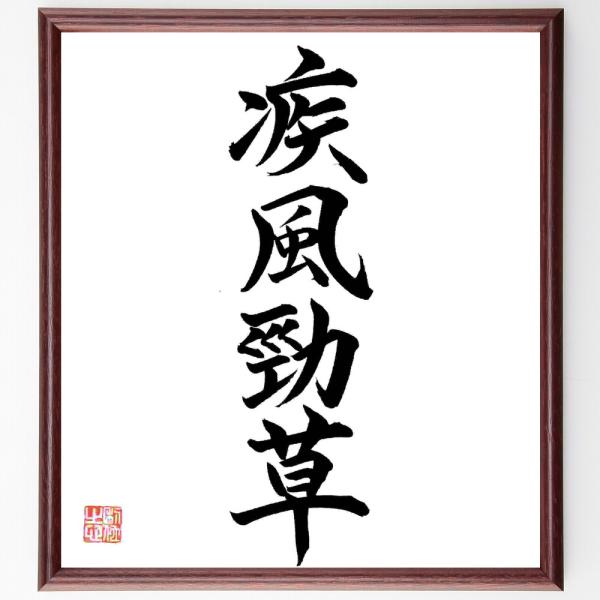 四字熟語「疾風勁草」手書き書道色紙額/毛筆直筆済み