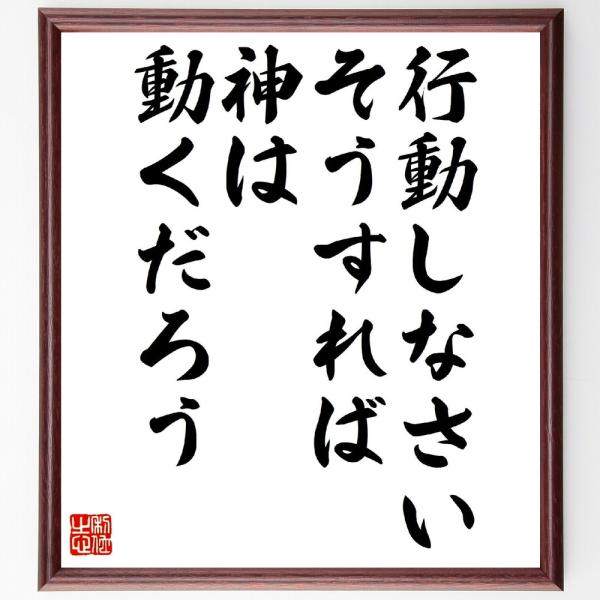 ジャンヌ・ダルクの名言「行動しなさい、そうすれば神は動くだろう」手書き書道色紙額/受注後の毛筆直筆