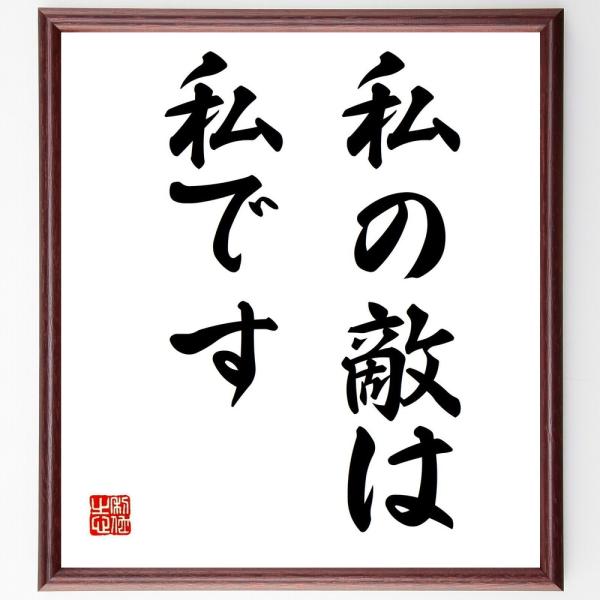 名言「私の敵は、私です」手書き書道色紙額/受注後の毛筆直筆