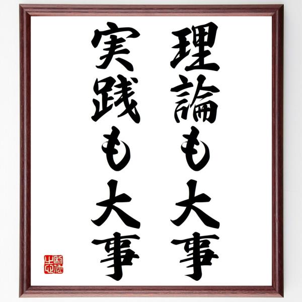 名言「理論も大事、実践も大事」手書き書道色紙額/受注後の毛筆直筆