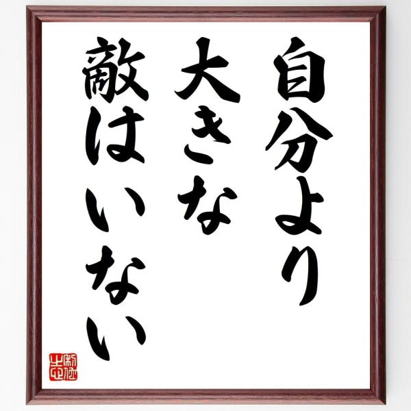 名言「自分より大きな敵はいない」手書き書道色紙額/受注後の毛筆直筆