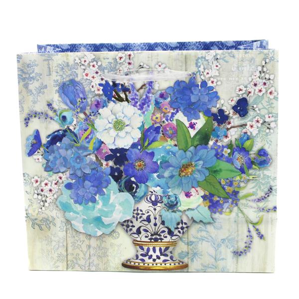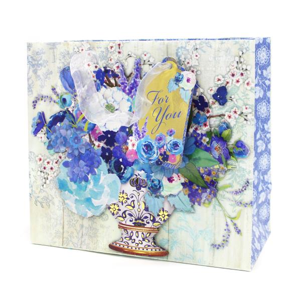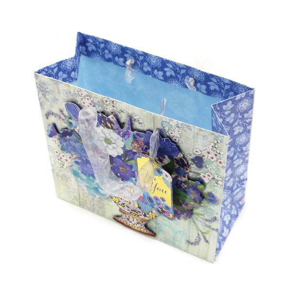 Punch Studio ギフトバッグ | 紙袋 タグ付き Sサイズ (青い花々)