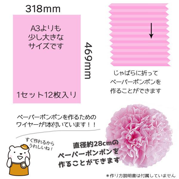 カラーペーパー 12枚入りセット お花紙 薄葉紙 ラッピング 包装紙 ペーパーポンポン、フラワーポムやペーパーフラワーの材料に 推し活