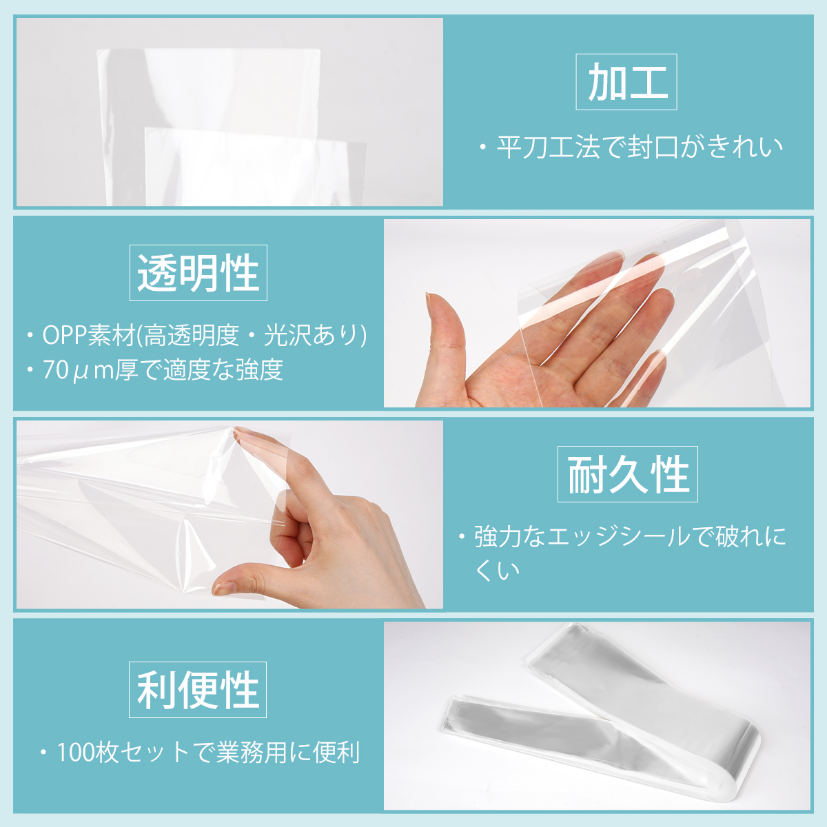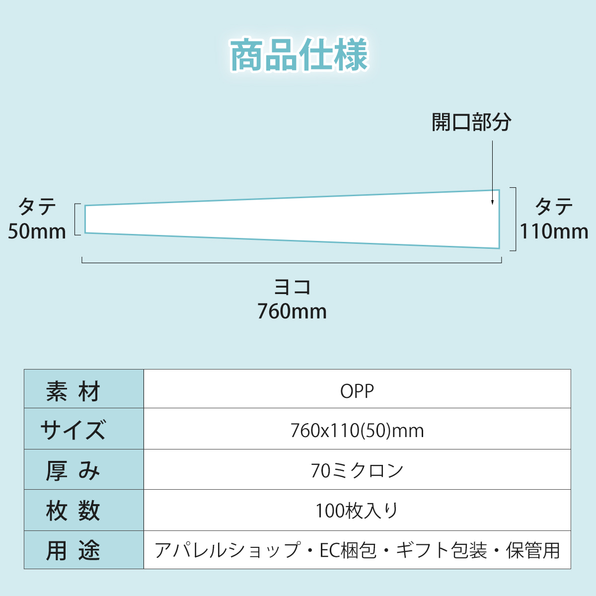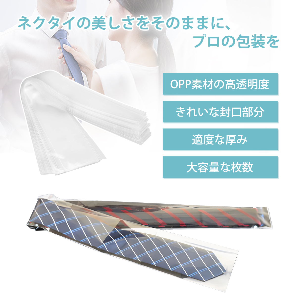 ネクタイ用OPP袋 100枚入 透明袋 ネクタイ 衣料品用 袋 OPP袋 760x110(50)mm 70ミクロン厚 ギフトバッグ アパレル 梱包 保管 丈夫 大きいサイズ
