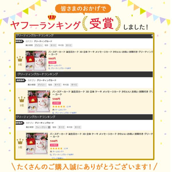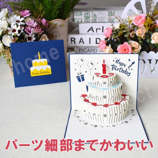 バースデーカード おしゃれ 立体 誕生日カード 3D 手作り ケーキ メッセージカード かわいい お祝い 封筒付き グリーティングカード レター ポップアップカード