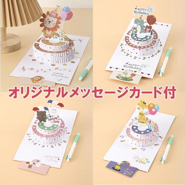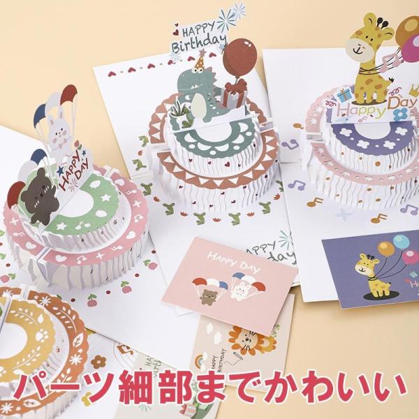 バースデーカード 誕生日カード 3D 立体 恐竜 ウサギ 熊 キリン ライオン メッセージカード かわいい お祝い 封筒付き グリーティングカード レター カード