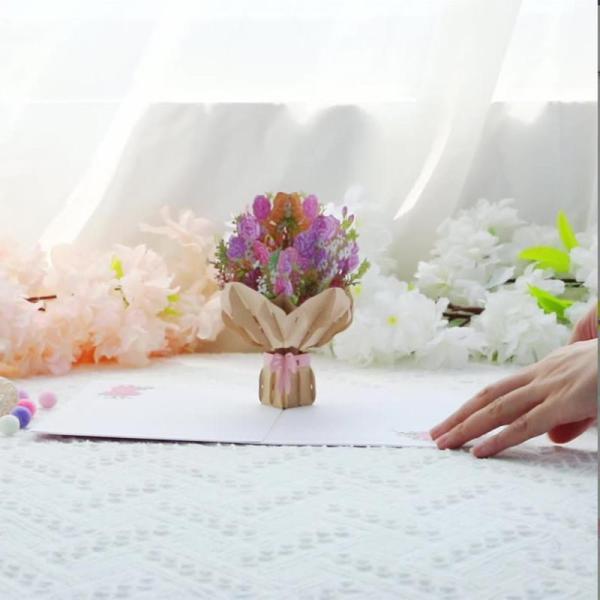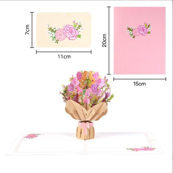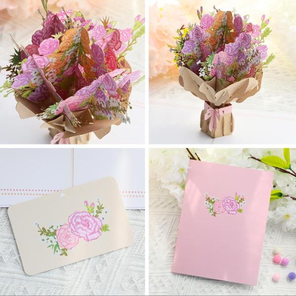 母の日 メッセージカード グリーティングカード カーネーション バースデーカード 感謝 おしゃれ 立体 花束 3D 手作り かわいい お祝い 封筒付き