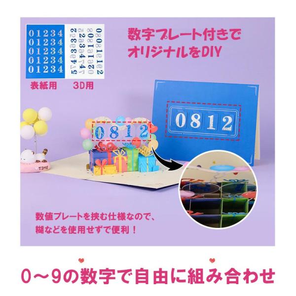 バースデーカード おしゃれ オリジナル 数字 立体 誕生日カード 3D 手作り メッセージカード かわいい お祝い 封筒付き グリーティングカード レター カード