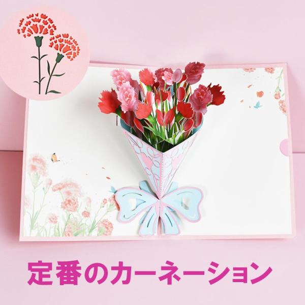 母の日 グリーティングカード メッセージカード カーネーション バースデーカード 感謝 おしゃれ 立体 花束 3D 手作り かわいい お祝い 封筒付き