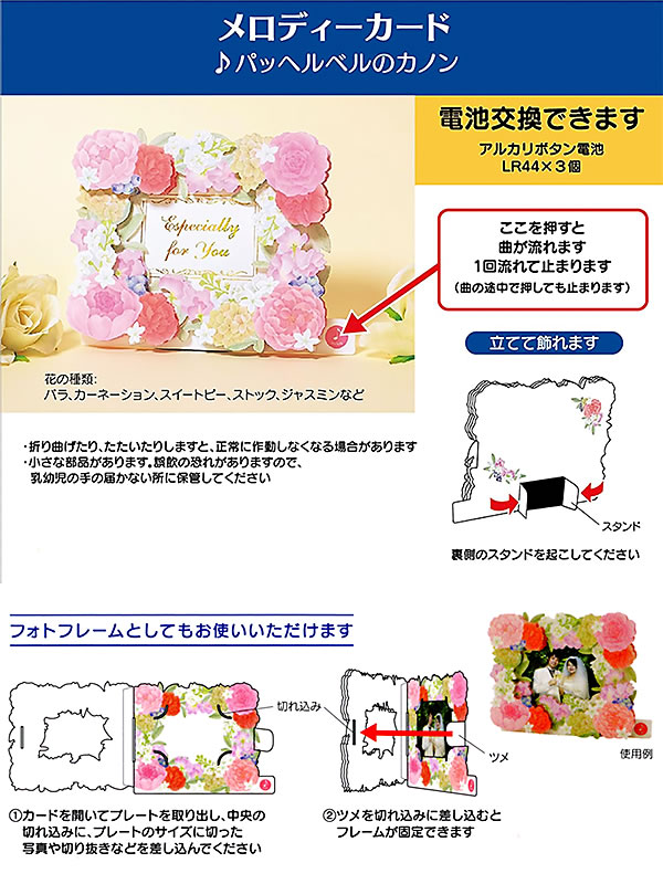 多目的カード メロディカード フラワーフレーム P156 サンリオ 立体カード 電池交換可能 オルゴールカード バースデー Birthday Card グリーティングカー