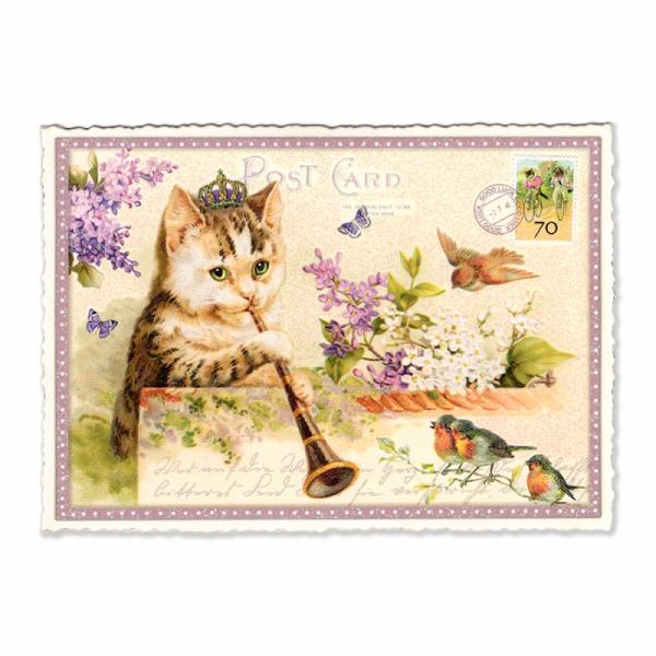 ドイツ製 ラメ&ダイカット ポストカード (ミュージカルキャット×木管楽器)