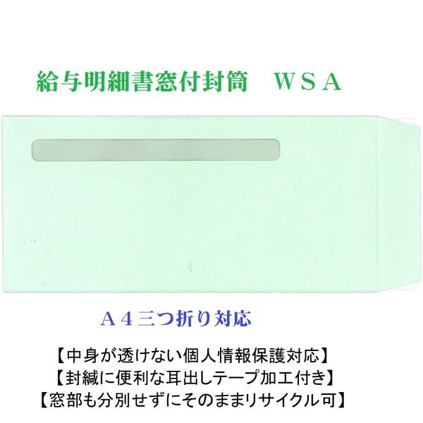 窓付き封筒 給与明細書封筒 WSA(アマノ給与明細書封筒 2301101対応)耳だしテープ付 200枚