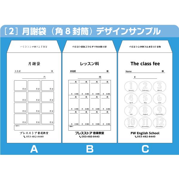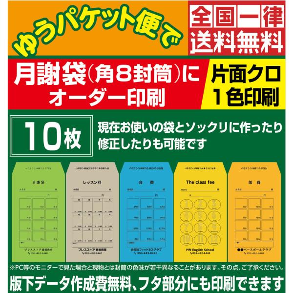 月謝袋 オーダー印刷 10枚 版下作成費無料 黒1色印刷 角8封筒