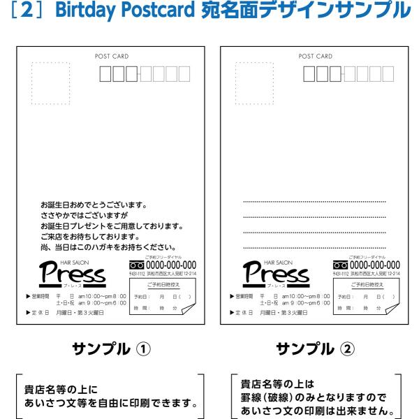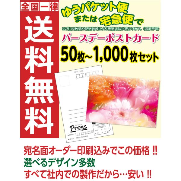 バースデーカード 宛名面オーダー印刷 裏面選べるデザイン50枚セット~
