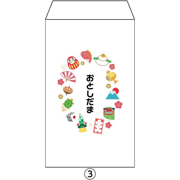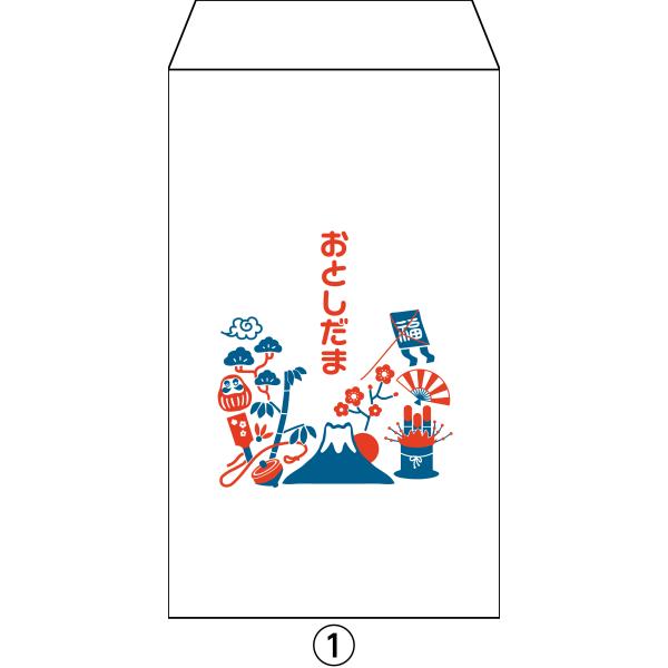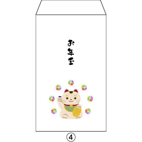 新紙幣が折らずに入るお年玉ポチ袋 オリジナルデザイン 1種類4枚セット〜