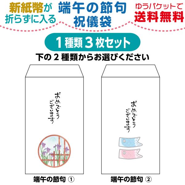 端午の節句用 新紙幣が折らずに入る ちょっと大きめ祝儀袋 1種類3枚セット