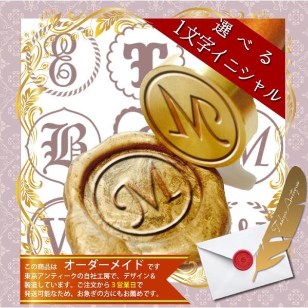 シーリングスタンプ セット 持ち手 ワックス付き 封蝋スタンプ 真鍮製 オーダーメイド 結婚式 招待状 ギフト ラッピング用【ひとつの イニシャル】