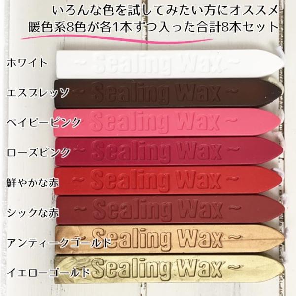 シーリングスタンプ用 ろうそく型 【暖色】 おためし8色入り