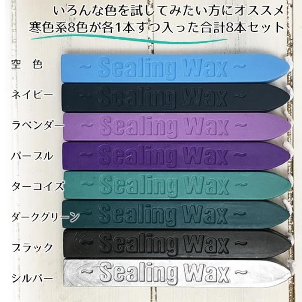 シーリングスタンプ用 ろうそく型 【寒色】おためし8色入り