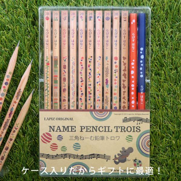 名入れ 鉛筆 三角ねーむ鉛筆 トロワ 2B 赤鉛筆 赤青鉛筆 三角鉛筆 卒園 記念品 オリジナル えんぴつ ウッド 木目 かわいい