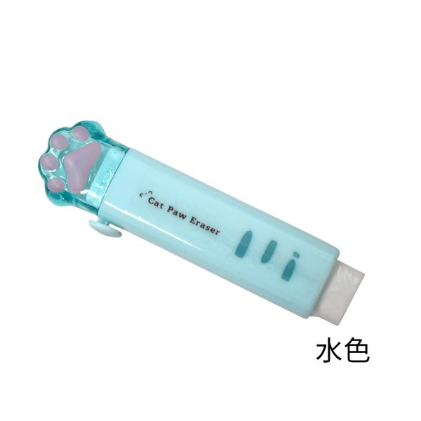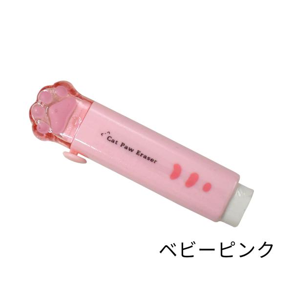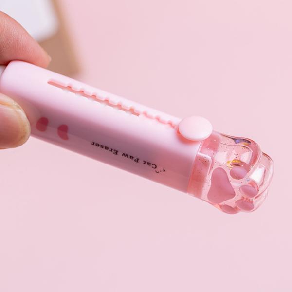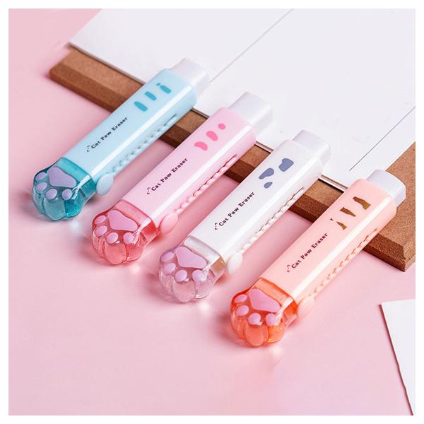 4色セット プラの肉球カバー付き消しゴム。落としても見つけやすい、長さロックでちぎれにくい。 猫 文具 雑貨 かわいい 学校 筆記用具 女子