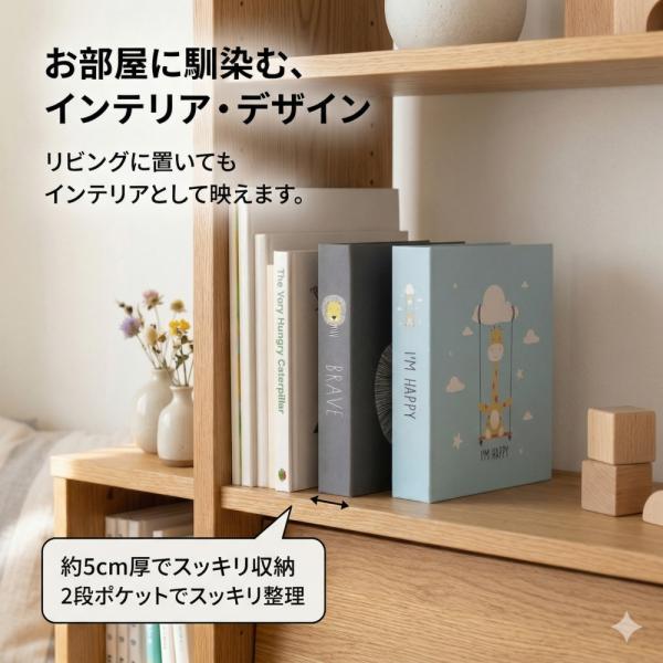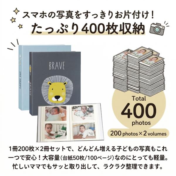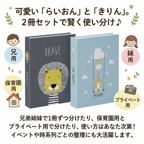 アルバム 写真 大容量 L判 L版 1冊200枚 2冊セット 400枚 フォトアルバム らいおんきりん カラフル かわいい イラスト 子供 家族 男の子 女の子 軽量