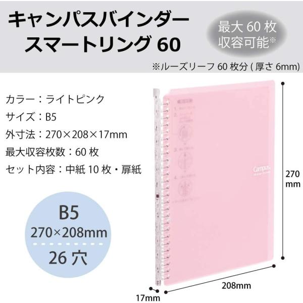 コクヨ ルーズリーフ バインダー キャンパス スマートリング B5 26穴 最大60枚 ライトピンク ル-SP706LP 単品