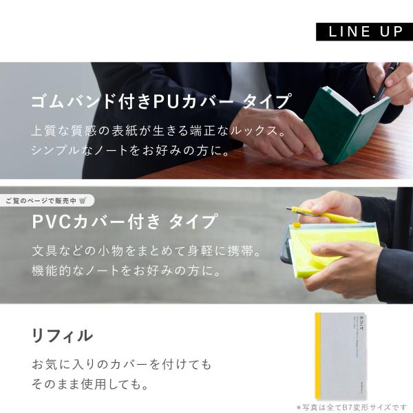 手帳用紙を使った小さな方眼ノート・B7変型・PVCカバー付き 日記帳 メモ帳 ビジネス シンプル 大人 5mm方眼 カラフル EDiT コンパクト 小さめ おしゃれ