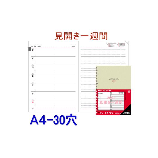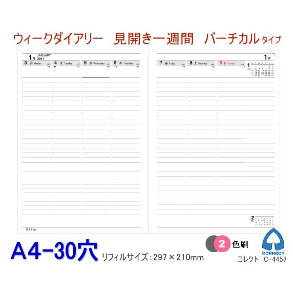 2026年ダイアリー ルーズリーフリフィル A4サイズ 30穴 C-4657 コレクト