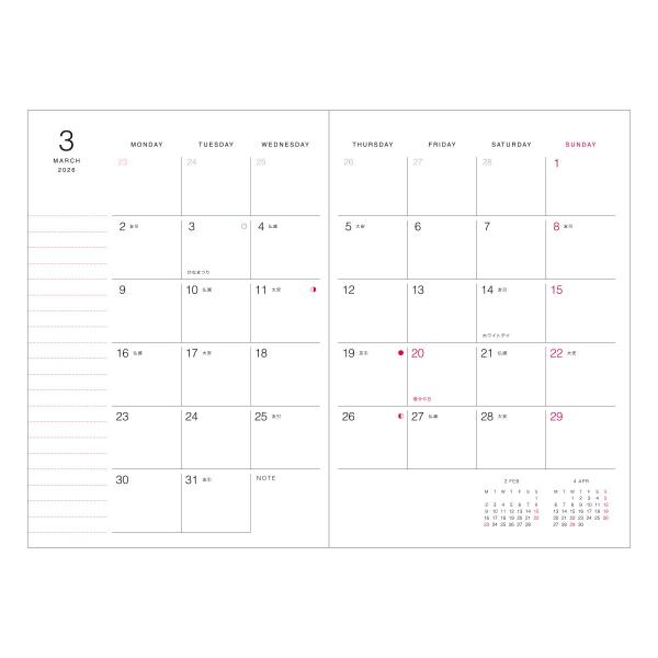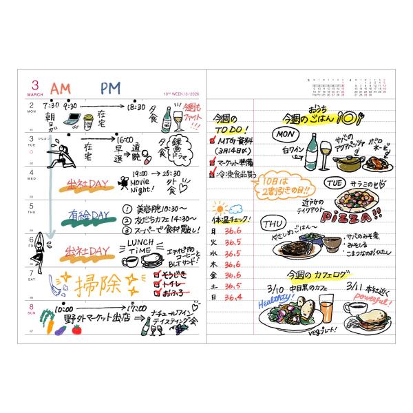 手帳 2026 スケジュール帳 2025年12月始まり 週間レフト A6変型 ポール&ジョー 猫柄 ステッカー付き ペンホルダー PVCカバー付 マークス