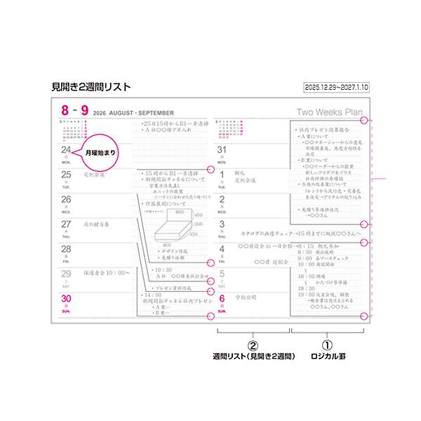 ナカバヤシ 2026年版手帳 ロジカルダイアリー 見開き2週間 表紙Bタイプ A5 月曜始まり クラフト NS-A504-26BS