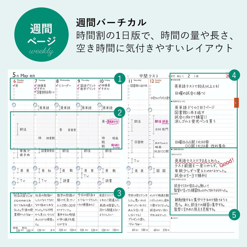 【中学生・高校生向け】2026年4月始まり 手帳 スケジュール帳 ダイアリー NOLTY(ノルティ) A5変型 〈月間カレンダー+週間バーチカル〉月曜始まり スコラ ライト
