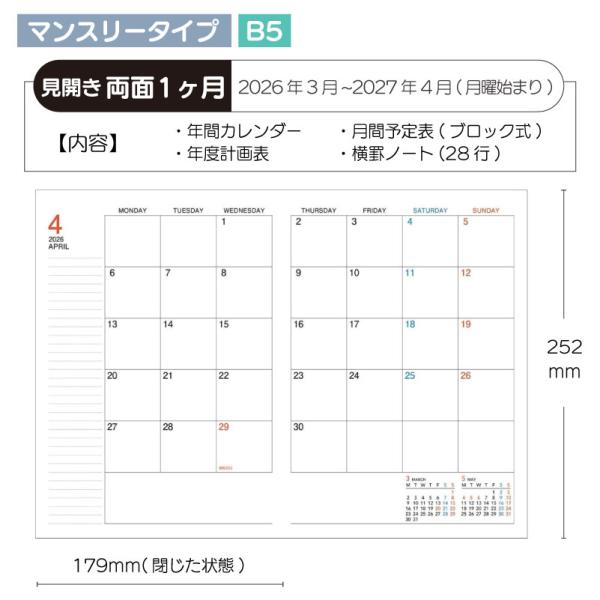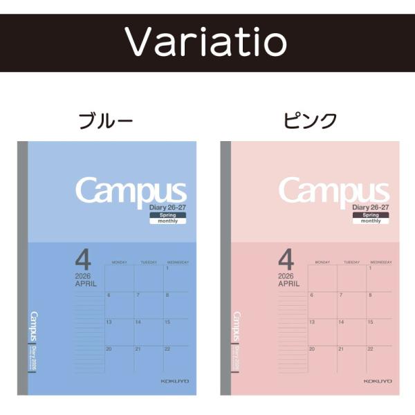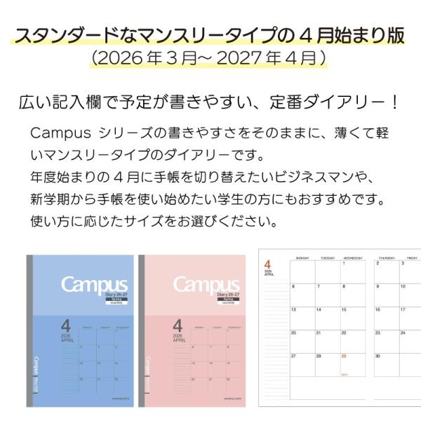 B5 キャンパスダイアリー コクヨ KOKUYO 4月始まり版 2026年 ネコポス便2個以上送料無料 スケジュール ノートタイプ マンスリー 薄くて軽いスケジュール帳!