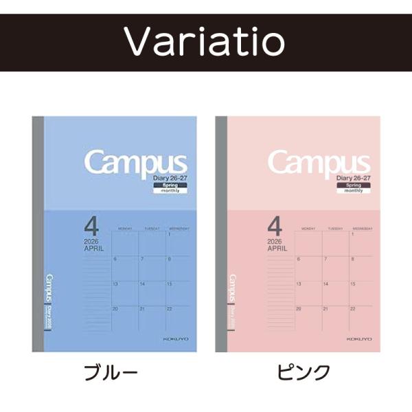 A5 キャンパスダイアリー コクヨ KOKUYO 4月始まり版 2026年 ネコポス便2個以上送料無料 スケジュール ノートタイプ マンスリー 薄くて軽いスケジュール帳!