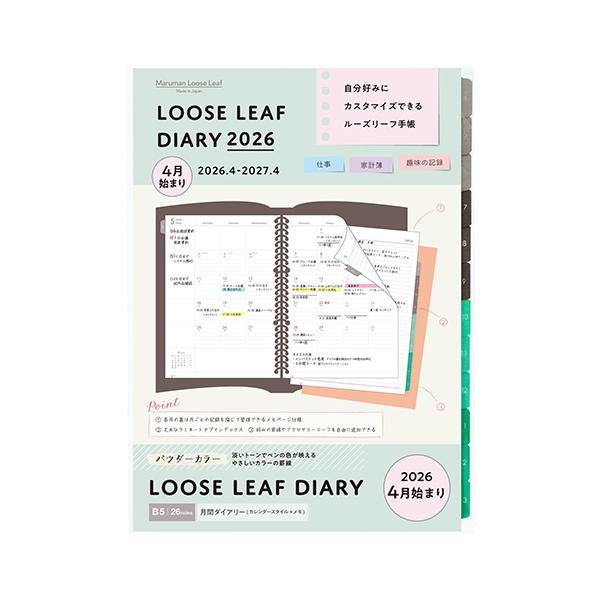 ☆マルマン 2026年4月始まり手帳リフィル B5 ルーズリーフダイアリー 月間マンスリー 26穴 maruman LD3834W-26