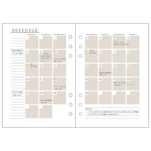 システム手帳 マークス 6穴 A5正寸 リフィル レフィル日付なしダイアリー 月間ブロック&メモ ブラウン ライフログ 詰め替え用 差し替え用 詰替用 差替用