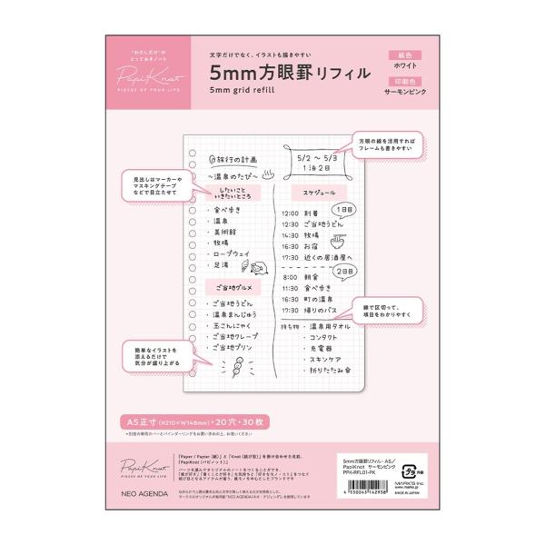 パピノット 5mm方眼罫リフィル・A5 ホワイト PapiKnot システム手帳 カスタム 手帳 ルーズリーフ 方眼紙 30枚入