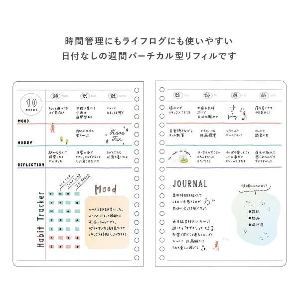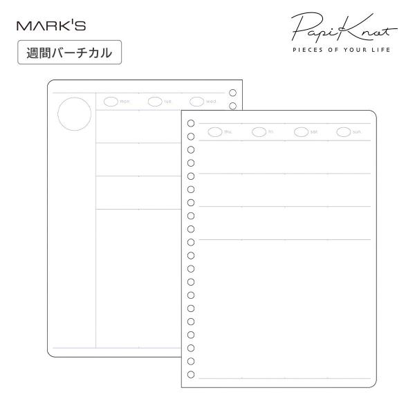 パピノット 日付フリー・週間バーチカルリフィル・A5 ホワイト ラベンダー 週間ノート PapiKnot システム手帳 カスタムノート 20穴 ノートリフィル マークス