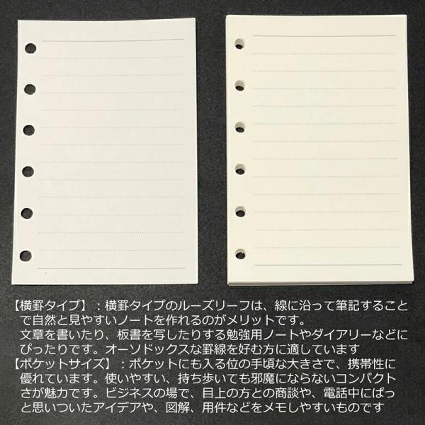 【4冊セット 180枚】 手帳リフィル ミニ6穴 横罫 A7 6穴 システム手帳 メモ帳 リフィル ポケットサイズ 中身 A7 8cm×12cm
