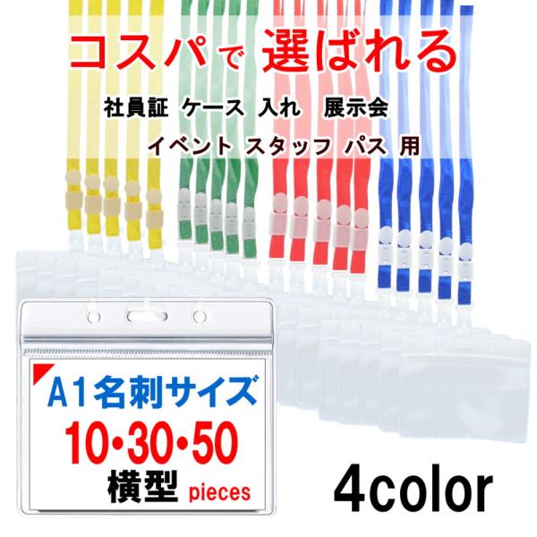 カードホルダー パスケース 名札ホルダー 10枚 ネックストラップ 名札 吊り下げ イベント スタッフ パス 名刺 社員証 ID ケース 入れ 首かけ 展示会 防水 横型