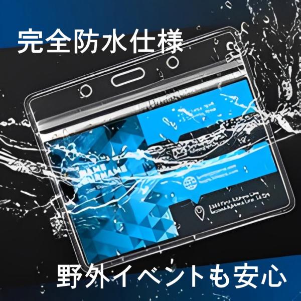 カードホルダー パスケース 名札ホルダー 50枚 ネックストラップ 名札 吊り下げ イベント スタッフ パス 名刺 社員証 ID ケース 入れ 首かけ 展示会 防水 横型