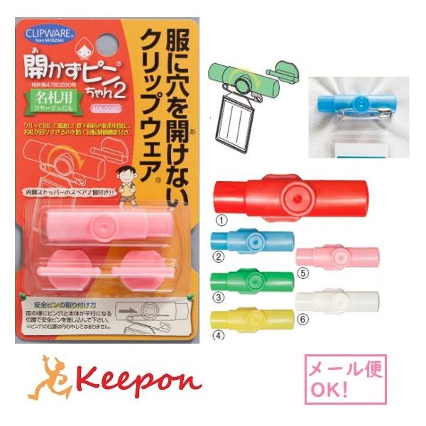 開かずピンちゃん2 (15個までメール便可) 6色から選択 クリップウェア 小学生 小学校 名札 穴が開かない 留め 防犯 対策 名前
