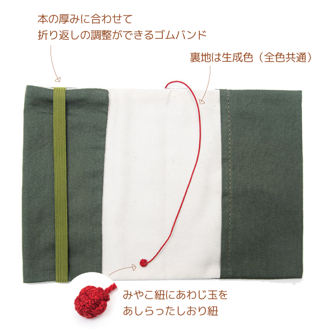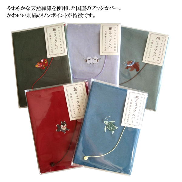布のブックカバー ワンポイント 刺繍 文庫本 かわいい しおり紐 CONCISE コンサイス TTC 和風 和柄 日本製 天然素材