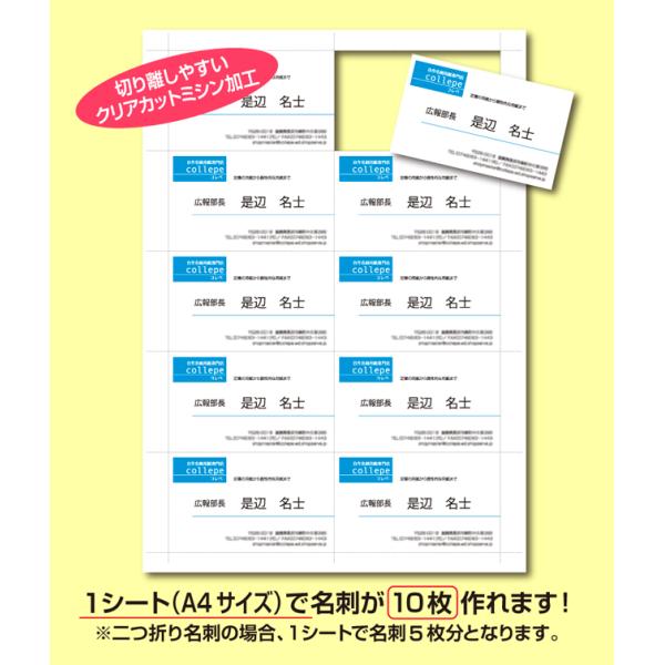マルチ用紙 名刺500枚分 A4サイズに10面付×50シート ホワイト