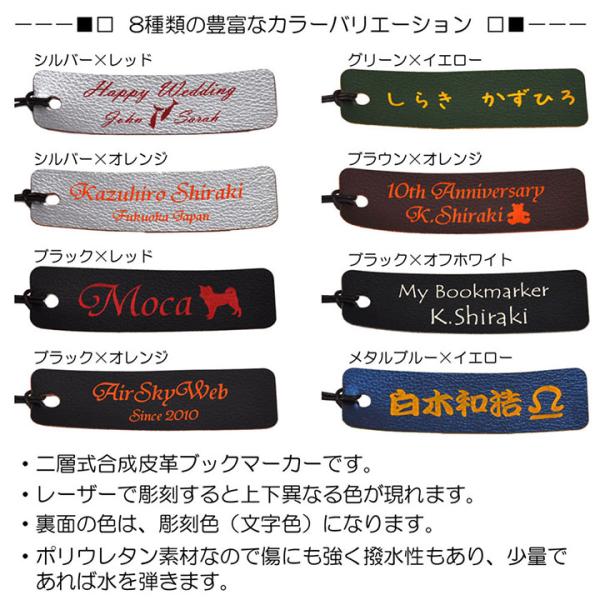 名入れ メッセージ 刻印 本の栞 しおり 世界で1つだけ PUレザー ブックマーカー 8色展開 卒業記念品 入学祝い 誕生日 文具 プチギフト