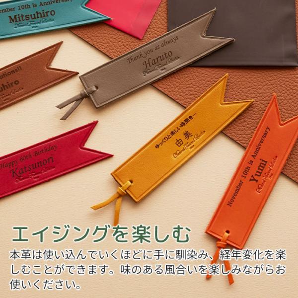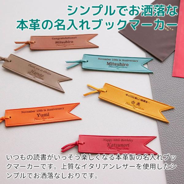 ブックマーカー しおり レザー 本革 誕生日プレゼント 内祝い プレゼント ギフト 6色から選べる名入れレザーブックマーカー Laser