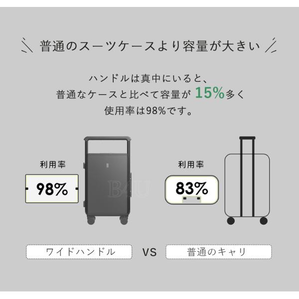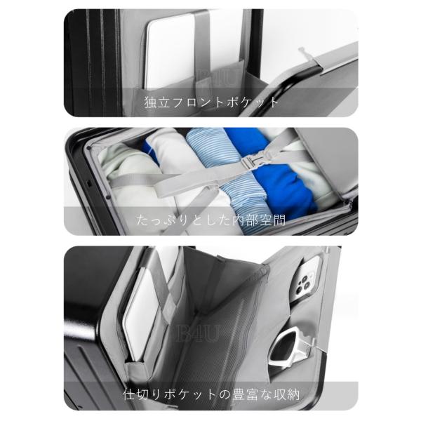 B4U スーツケース ワイドハンドル フロントオープン TSAロック USBポート付き 多機能 スーツケース Sサイズ Mサイズ 20インチ 24インチ カップホルダー付き 静音